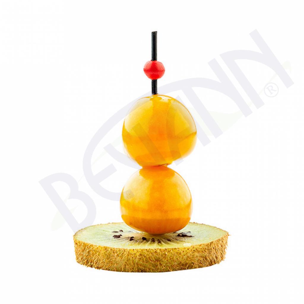 Izdelana iz naravnih materialov, lesa in bambusa, so ta nabodala odporna na vročino in mikrovalovno pečico, kar jih naredi idealna za uporabo s toplimi in hladnimi prigrizki. Rdeča perla na koncu doda dotik elegance in privlačnosti vaši postrežbi.