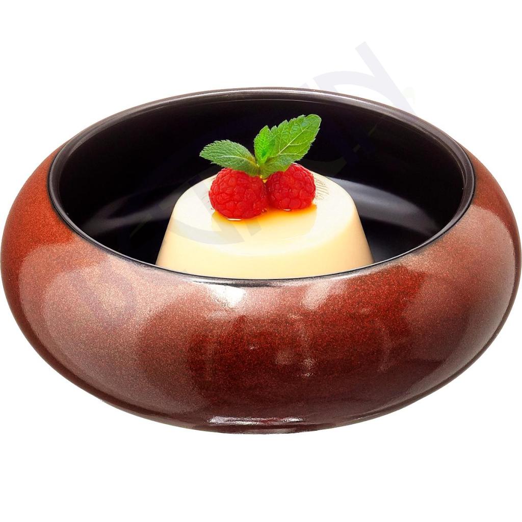 Unikatna skodela ZANZIBAR s premerom 15 cm in višino 5,5 cm izstopa z eksotično obliko in bogatimi barvnimi kontrasti. Izdelan iz visokokakovostnega porcelana, združuje globoko črno notranjost z rdeče-rjavim zunanjim sijajem. Zaradi svoje zaobljene oblike je popoln za postrežbo sladic, amuse-bouche ali predjedi. Elegantna in sodobna zasnova dopolnjuje vsako kulinarično kreacijo. Primeren za profesionalno uporabo v restavracijah in hotelih.