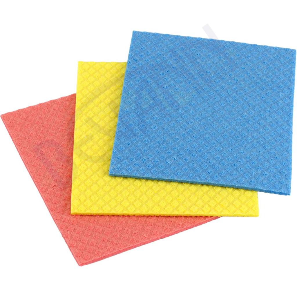 Vpojne gobaste krpe: Gobaste krpe so vpojni pomočniki za posodo, delovne plošče, pomivalna korita in pipe ter imajo zaradi tekstilnega vložka dobro vzdržljivost in odlično odpornost na trganje.