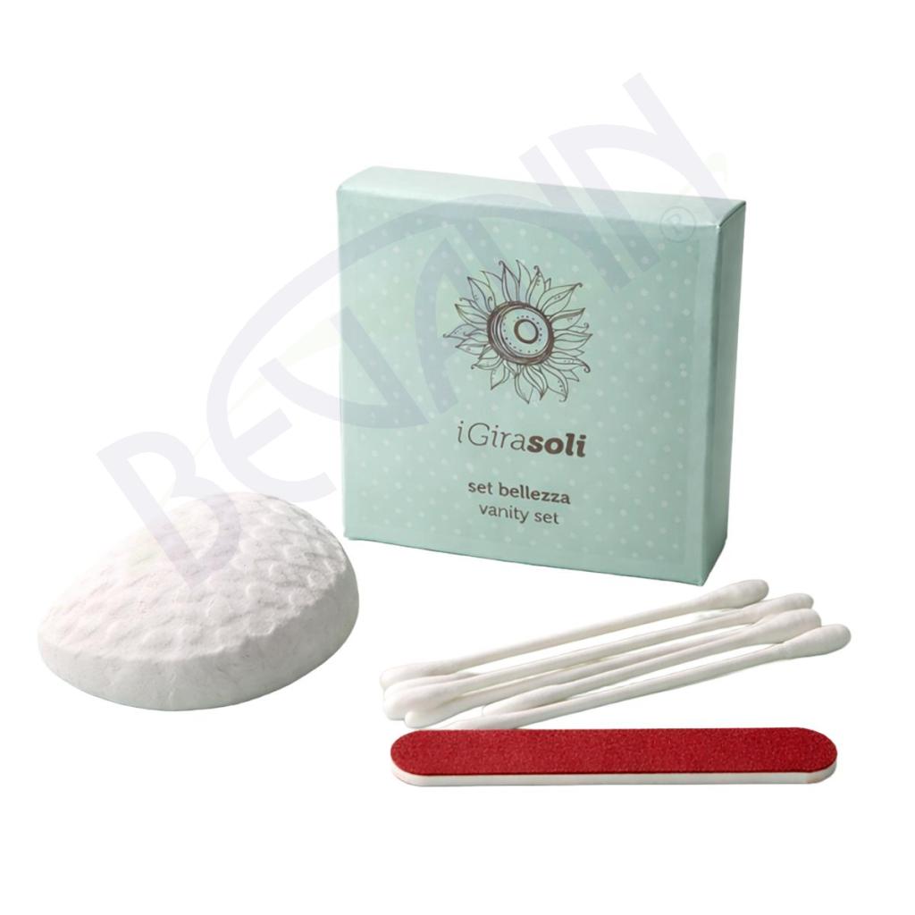 Presenetite svoje gostje s pridihom elegance in popolno pozornostjo do detajlov s kozmetičnim kompletom I Girasoli. Ta praktičen ženski set za osebno nego je bil skrbno izbran, da damam ponudi vse ključne pripomočke, ki jih potrebujejo v kopalnici med svojim bivanjem. Elegantna embalaža v nežni modrozeleni barvi s prepoznavnim motivom sončnice se odlično poda v vsak sodoben ambient.