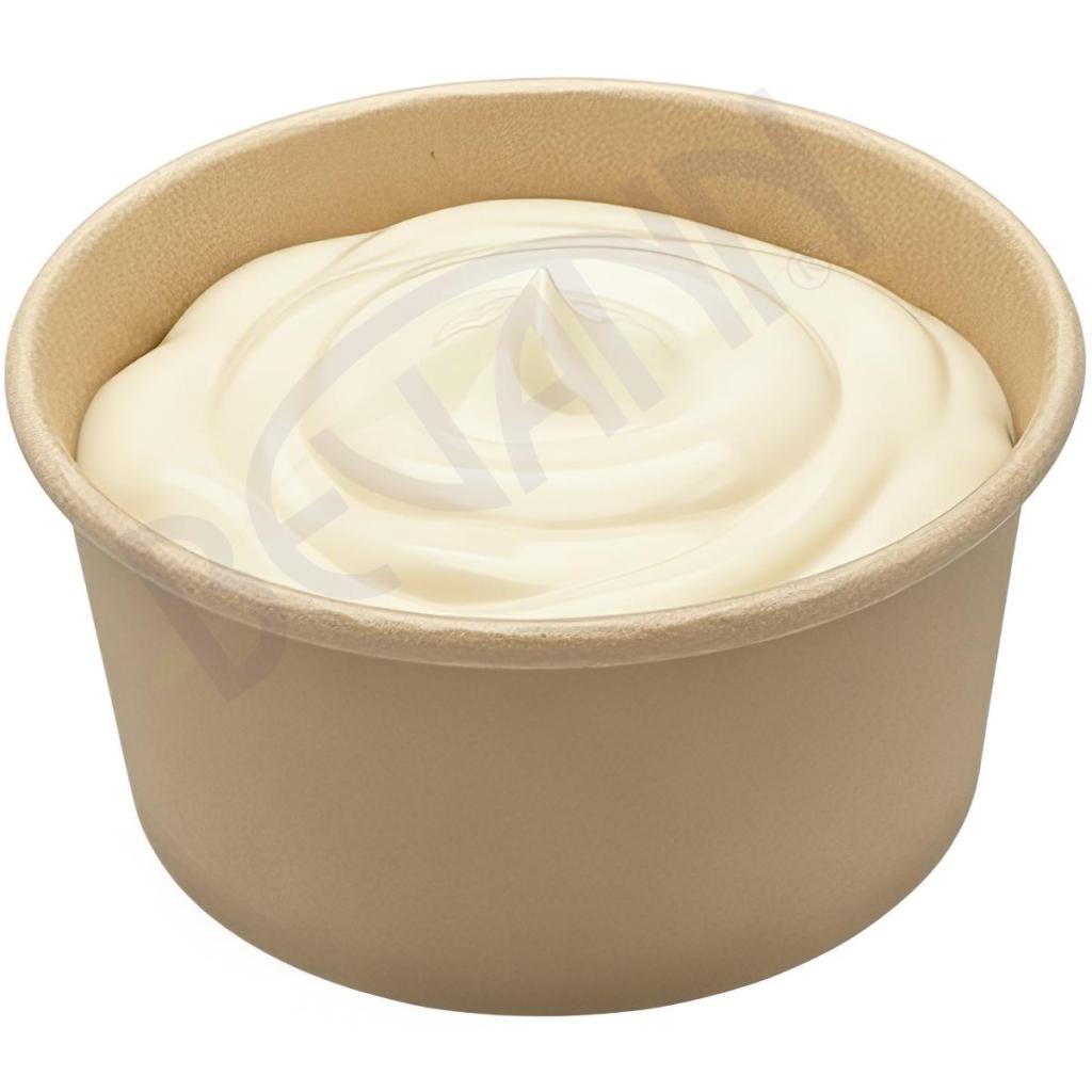 Kozarci so izdelani iz recikliranega papirja kraft (rjava barva), ki je na notranji strani prevlečen s tanko plastjo PE folije. Ta prevleka preprečuje lepljenje omak, zagotavlja nepremočljivost in odpornost na maščobo ter ohranja profesionalen videz.