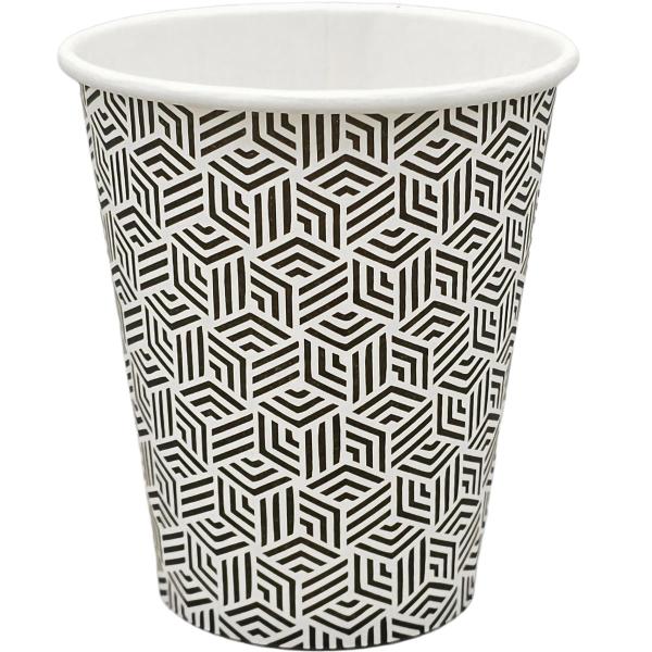 Papirni kozarci iz močnega papirja Material: bela lepenka - na notranji strani prevlečena s polietilenom. 1-stenski karton posebej močan Volumen: 100 ml (do vrha kozarca je 120 ml) Premer: 63 mm Višina: 63 mm Tisk: Coffee time Napisi na kozarcu: Coffe, Capuccino, Espresso, Machiato, Latte
