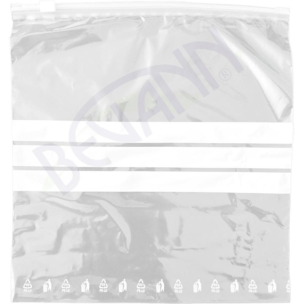 Zadrgne vrečke 27 x 28 cm so idealna rešitev za shranjevanje večjih količin hrane, oblačil ali pripomočkov. Izdelane so iz visokokakovostnega LDPE materiala, ki je primeren za večkratno uporabo in varen za stik z živili. Vrečke so prosojne in imajo bele označevalne pasove za pisanje. Zahvaljujoč močni zadrgi omogočajo enostavno odpiranje in zapiranje. Volumen 3 litre zagotavlja veliko prostornino.