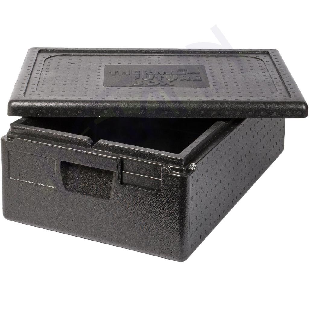 Predstavljamo vam robustno izolirano škatlo Thermobox PREMIUM GN 1/1 iz EPP s praktičnimi vdolbinami za ročaje na dolgih stranicah, ki omogočajo enostavno prenašanje tudi težkih in vročih GN posod. Škatla zagotavlja vrhunske izolacijske lastnosti za temperaturni razpon od -40 °C do +120 °C in je primerna za gastronomijo ter catering. Pokrov se tesno zapira, polja za označevanje pa omogočajo preprosto identifikacijo vsebine.